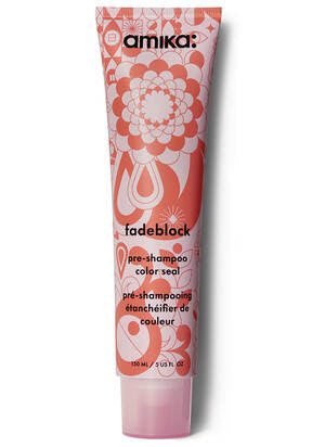 a pre-shampoo treatment that seals the cuticle + balances hair's PH to protect color from wash-related fading. Fadeblock pre-shampoo color seal also helps to shield against hard water, saltwater, chlorine, and contains UV filters