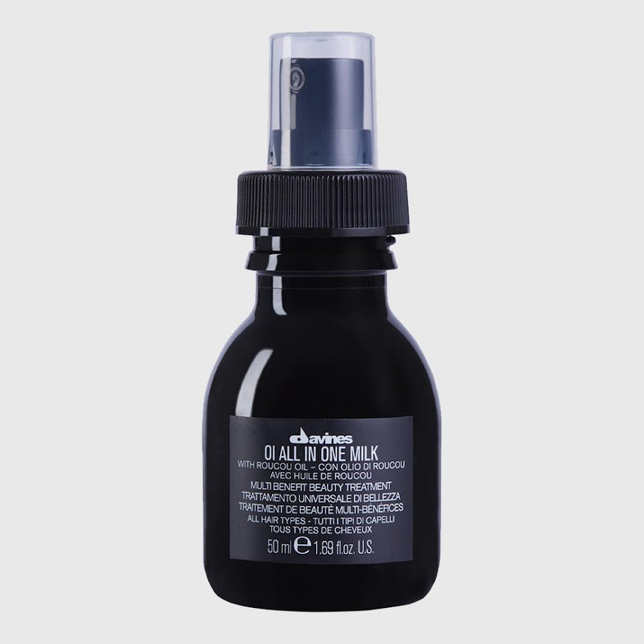 Lightweight OI All In One Milk is a multi-function leave-in spray treatment that softens, detangles, controls frizz and protects the hair from heat