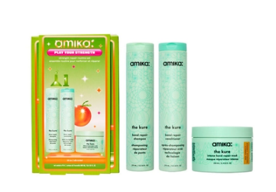 Strengthen your client's strands with this 3-piece routine set to send breakage and damage home for the holidays. This limited-edition gift set comes complete with full sizes of the kure strength repair shampoo, conditioner + mask all formulated with bond fortifying technology for 5.6x stronger* hair with 55% less breakage.**